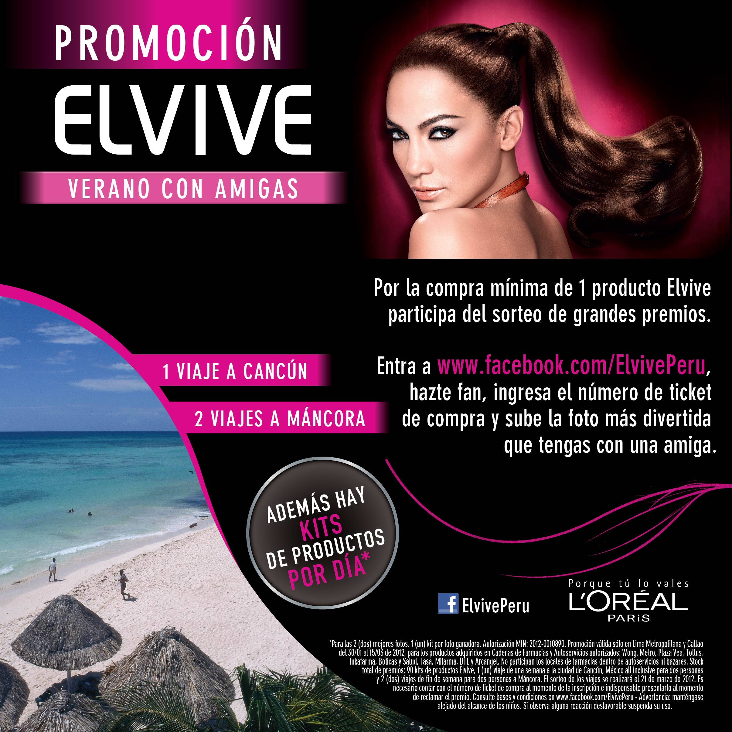 Descripción: Pop70 Realizó la promoción lanzamiento Verano con Amigas para el producto Elvive Caida Resist en Perúque se llevó a cabo de Enero a Marzo del 2012. La acción consistió de 2 etapas, un sampling mediante un team en los lugares de mayor afluencia del target donde se participava de una trivia y se veía el comercial en un Ipad y una etapa posterior en a que se lanzó una promoción por Facebook incentivando la compra del producto mediante la cuál comprando Elvive Caida Resist y subiendo una foto con sus amigas, podían ganarse un viaje a Cancún y dos viajes a Máncora.