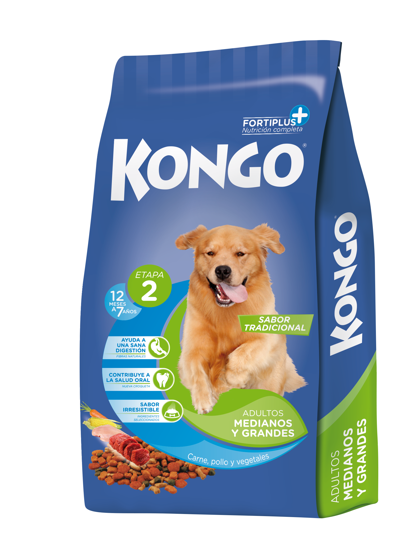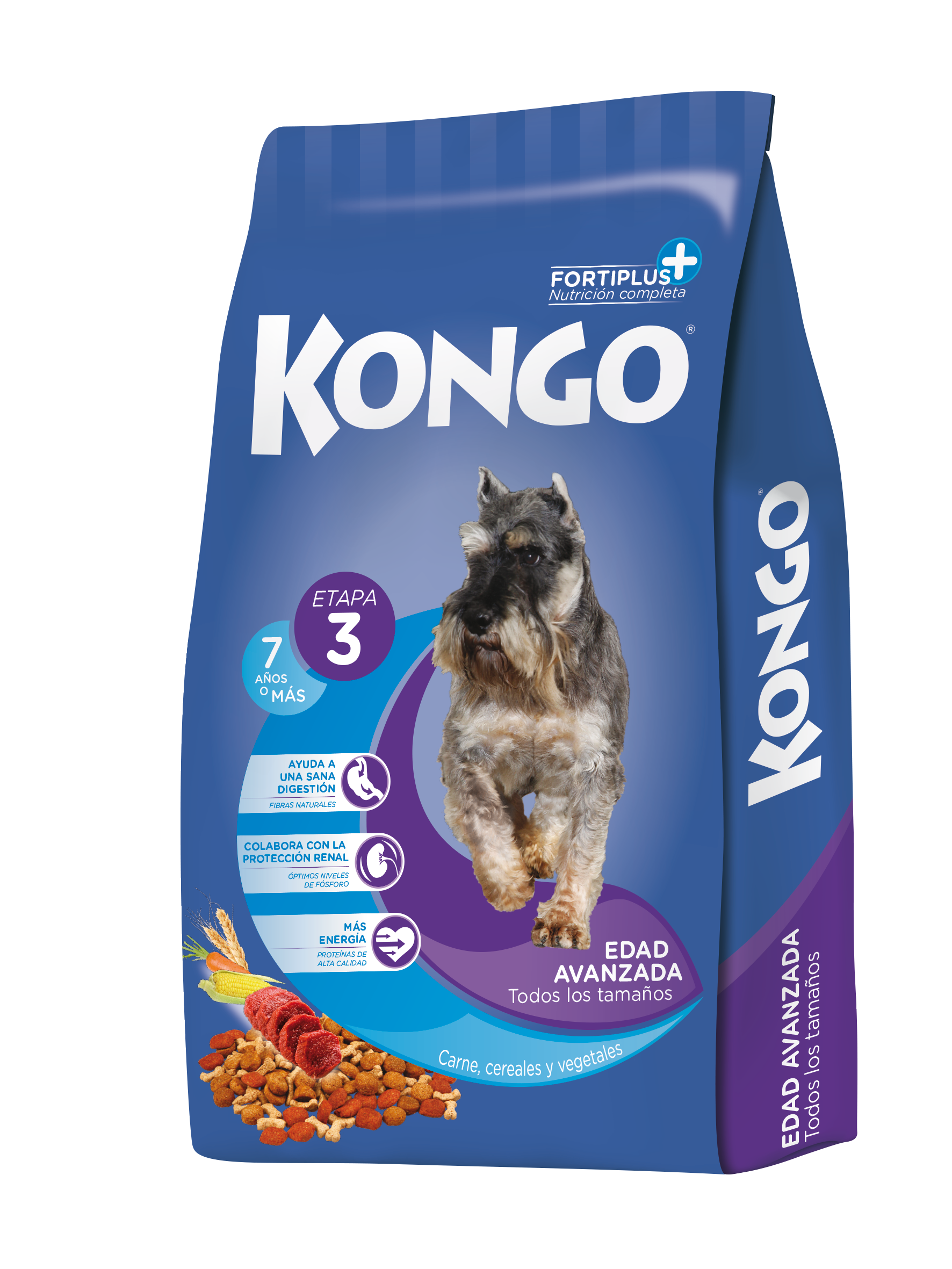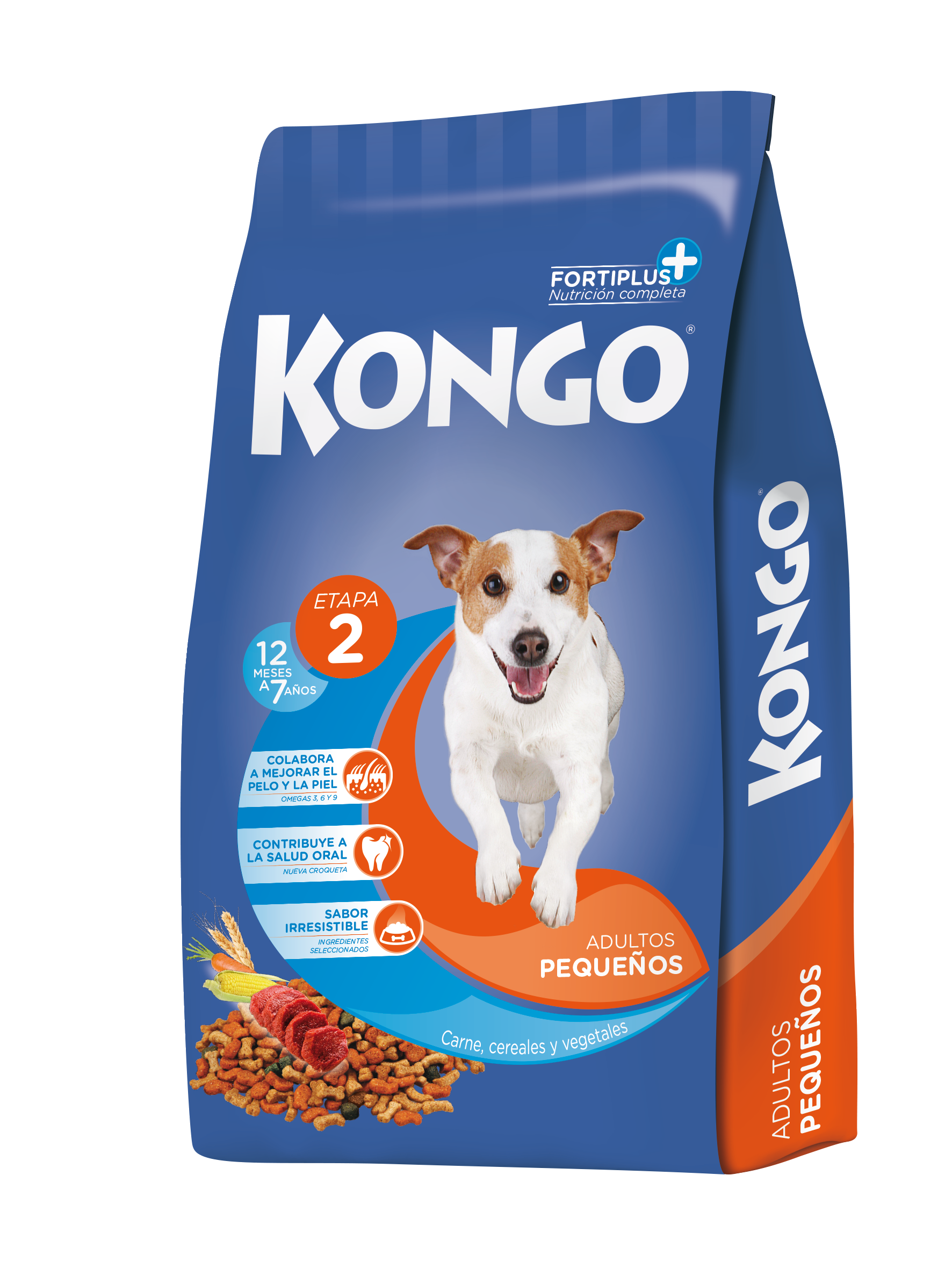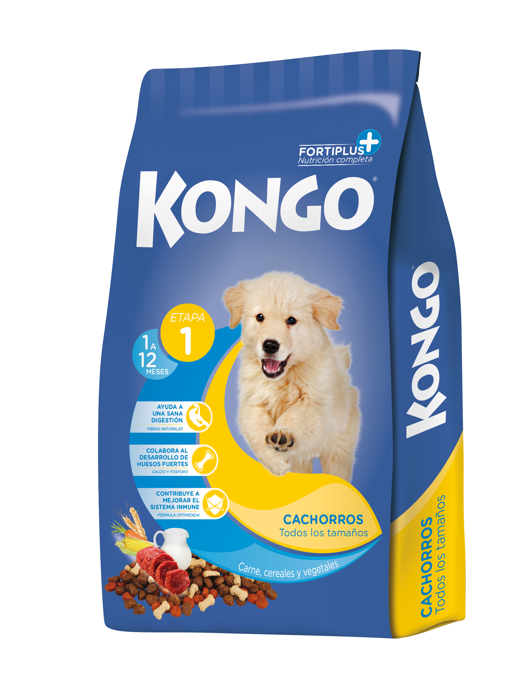 Se realizó un desarrollo integral para el restyling del pack y la ampliación de la línea de productos Kongo. La nueva línea ahora incluye un producto para perros de edad avanzada, acompañando a los actuales: cachorros, adultos razas pequeñas y adultos razas medianas y grandes. Para reforzar la comunicación en el cambio de esta nueva familia de productos se trabajó sobre el concepto de Etapas, separando las 3 etapas claves del crecimiento de los perros, etapa 1: hasta 1 año, etapa 2: de 1 a 7 años y etapa 3: 7 años o más.